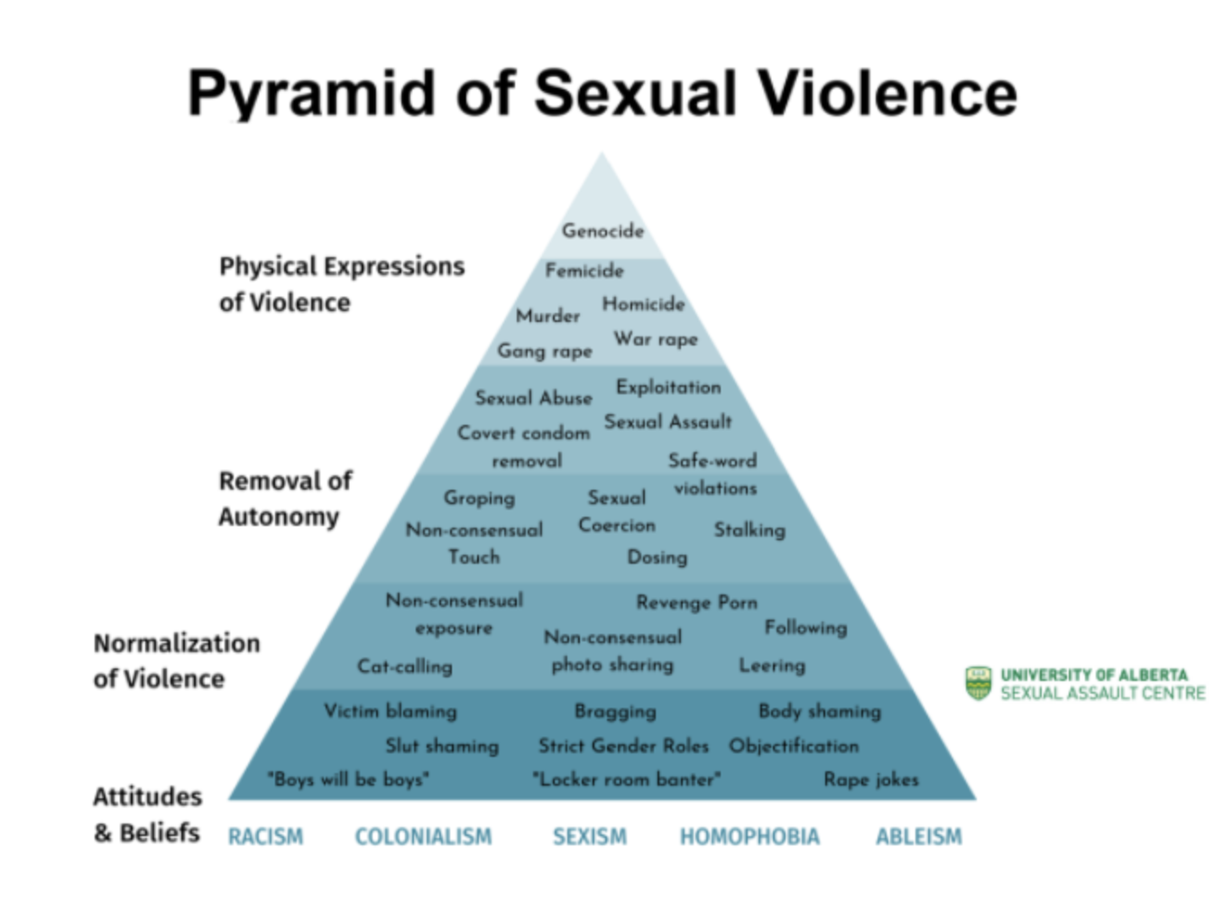 The reality is that sexual and gender-based violence exists on a continuum. It doesn't start with a criminal act. It starts much earlier — in comments, dynamics, and behaviours that get dismissed as minor, normal, or not worth making a fuss over. Understanding the full spectrum isn't about catastrophizing everyday interactions. It's about recognizing that harm has a pattern, and patterns can be interrupted.